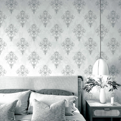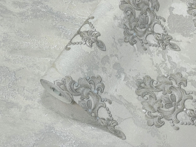 Рулонные обои Wiganford (Виганфорд) ER2705 мотив дамаск серый на жемчужном мраморе 1.06х10.05 м. винил на флизелине, Китай