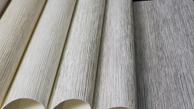 полотно со структурой льняной ткани. Оно уравновешивает расходящиеся веером лучи, успокаивая движение, делая интерьер законченным.