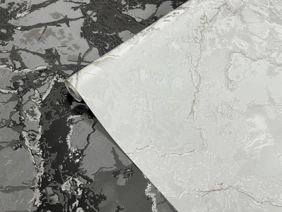 Второй мотив — дизайн каменной поверхности, напоминающий горный кварцит. Структура переливающегося на солнце камня оживляет и украшает стены любого помещения.