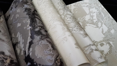 Второй мотив — дизайн каменной поверхности, напоминающий горный кварцит. Структура переливающегося на солнце камня оживляет и украшает стены любого помещения.
