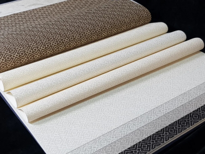 Первый сет представляет собой современные акценты: рельефные листья и геометрический узор, словно переплетение многообразных характеров и событий. Листья, будто вырезанные художником-гравером, создают ощущение рукотворной красоты, которая хранится веками. Мотив с геометрическим рисунком, покрывающим обойное полотно миниатюрными ромбами, напоминает графику народных костюмов, добавляет интерьеру стиль и утонченность.