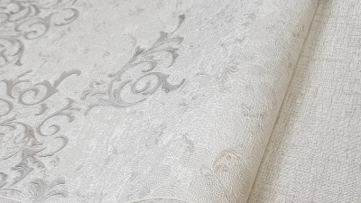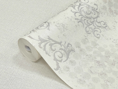 Рулонные обои YIEN (Йиен) 3211-4 мотив серебристый орнамент на белом фоне 1.06х10 м. винил на флизелине, Китай