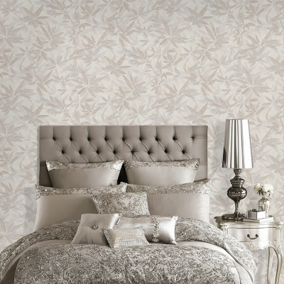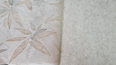 В первом сете представлена текстура с крупным растительным узором в приглушённых серо-бежевых тонах. Дополняет ее объемная, приятная на ощупь текстура набивной ткани в похожих оттенках. Во втором сете — мелкие веточки и невесомые линии. Продолжает этот мотив дизайн, имитирующий однотонную муаровую ткань.