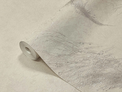 В первом сете представлена текстура с крупным растительным узором в приглушённых серо-бежевых тонах. Дополняет ее объемная, приятная на ощупь текстура набивной ткани в похожих оттенках. Во втором сете — мелкие веточки и невесомые линии. Продолжает этот мотив дизайн, имитирующий однотонную муаровую ткань.