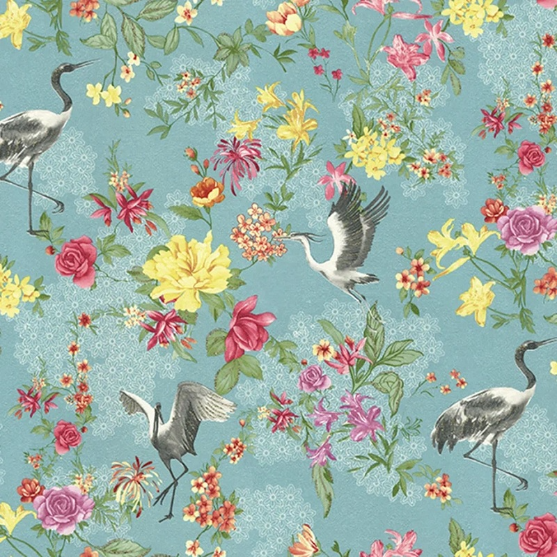 Рулонные обои YIEN (Йиен) 3501-3 мотив журавли на зелено-голубом мраморе 1.06х10 м. винил на флизелине, Китай