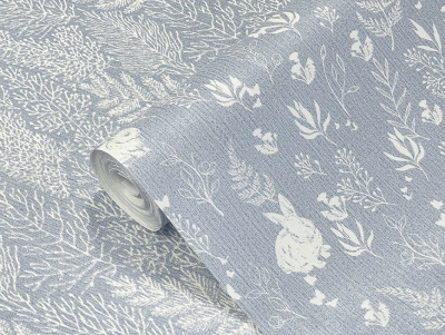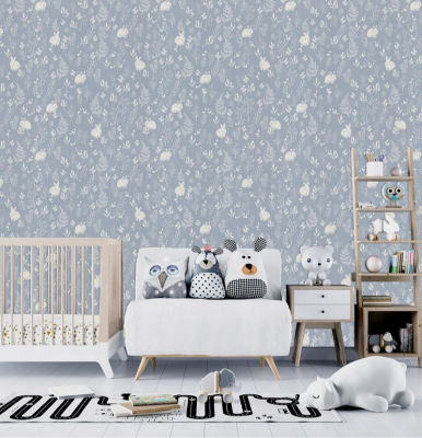 Рулонные обои YIEN (Йиен) A3506-1 мотив кролики на синем фоне 1.06х10 м. винил на флизелине, Китай
