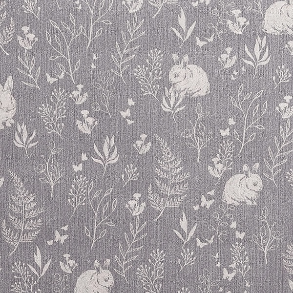 Рулонные обои YIEN (Йиен) A3506-2 мотив кролики на серебристом фоне 1.06х10 м. винил на флизелине, Китай