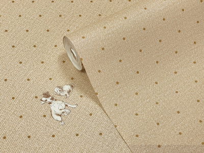 Рулонные обои YIEN (Йиен) A3509-2 уни золотые горошки на бежевой рогожке 1.06х10 м. винил на флизелине, Китай