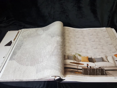 Рулонные обои YIEN (Йиен) A3201-2 мотив веера серые 1.06х10 м. винил на флизелине, Китай