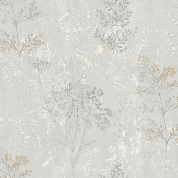 Рулонные обои YIEN (Йиен) A3203-1 мотив кашка серебристо золотитстая на серебрянном фоне 1.06х10 м. винил на флизелине, Китай