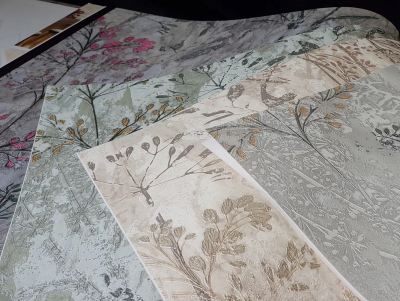 На первом дизайне оживают веточки молодого деревца, которое пробуждается после зимнего сна. Следующий дизайн переносит нас в мир абстракций и графических узоров. Продолжает этот графический узор не менее захватывающий дизайн, напоминающий туманность Ориона на звездном небе. Четвертый дизайн приглашает вас на прогулку в загадочный сад, где гигантские листья неизвестного кустарника тщательно нарисованы мастером-иллюстратором. В пятом сете под нежным прикосновением осеннего ветра трепещут веточки растений с пушистым колосом. Однотонные или напоминающие натуральный срез камня структуры служат компаньонами для всех основных дизайнов, как фоны, подчеркивающие красоту и оригинальность каждого изображения.