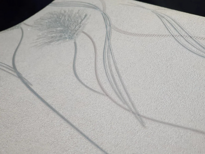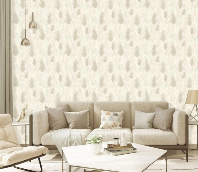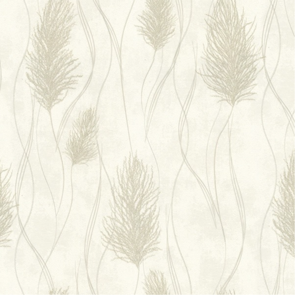 Рулонные обои YIEN (Йиен) A3205-3 мотив рогоз серебристые на св.ванильном фоне 1.06х10 м. винил на флизелине, Китай