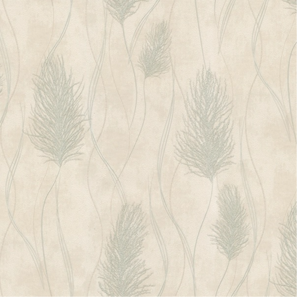 Рулонные обои YIEN (Йиен) A3205-4 мотив рогоз оливко-серебристый на бежево-розовом 1.06х10 м. винил на флизелине, Китай