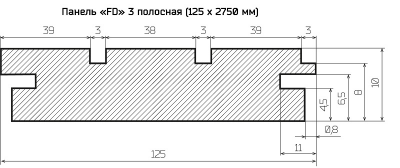 Стеновая панель шпонированная "FD" 125*10*2750 мм, 3-полосная, орех.